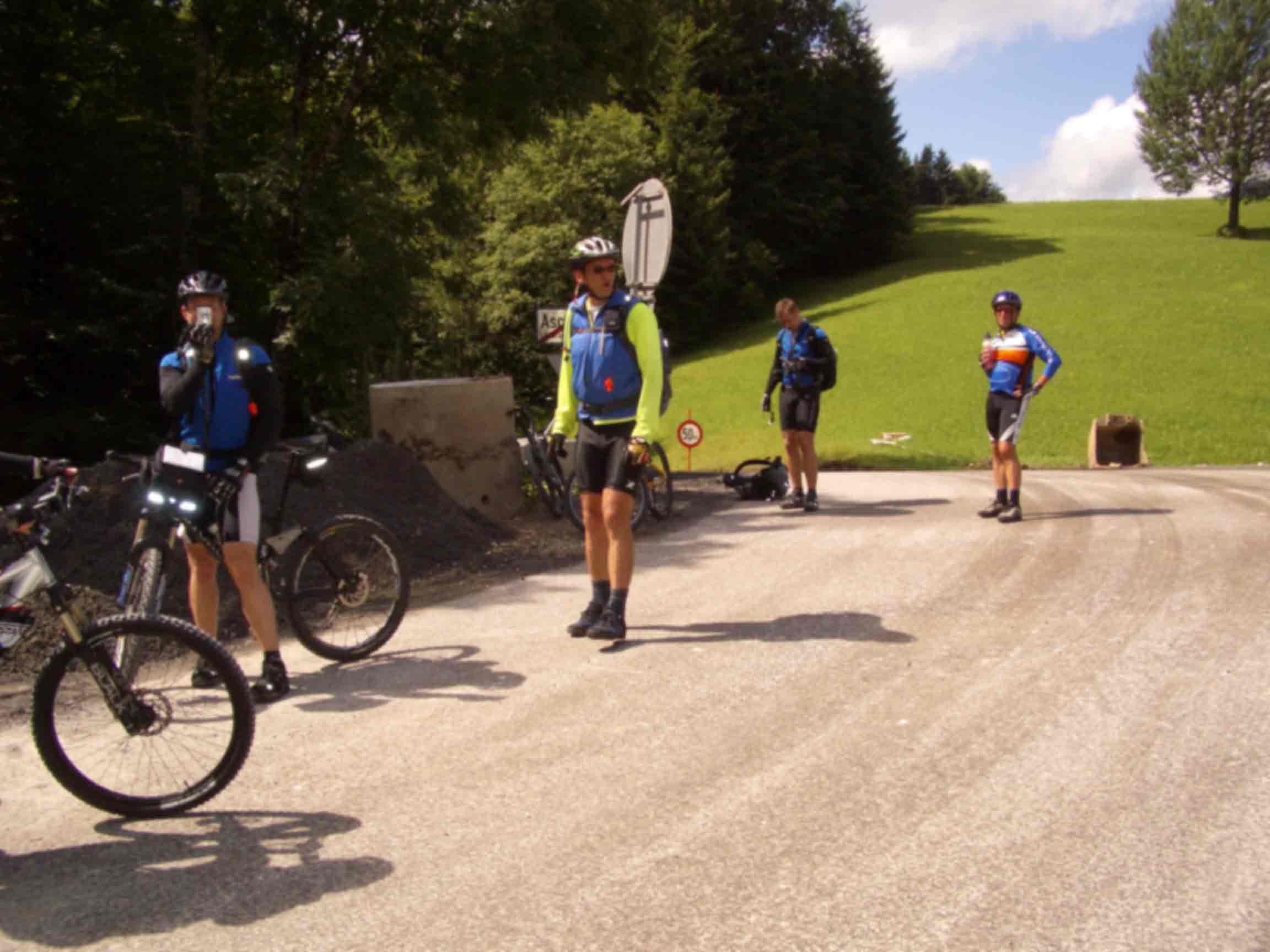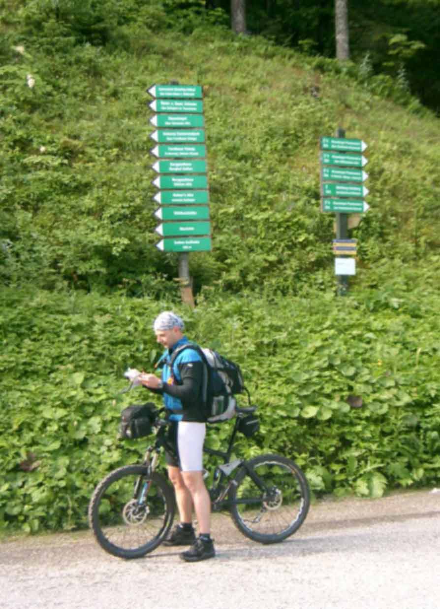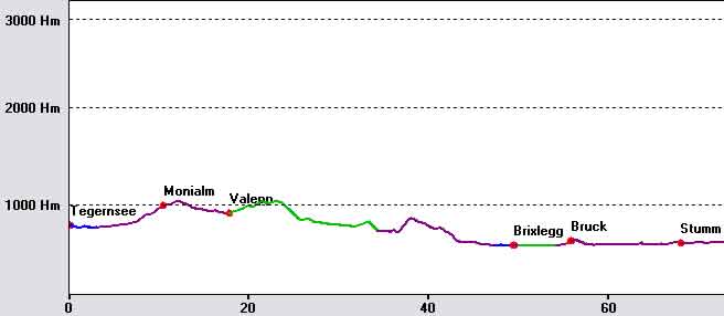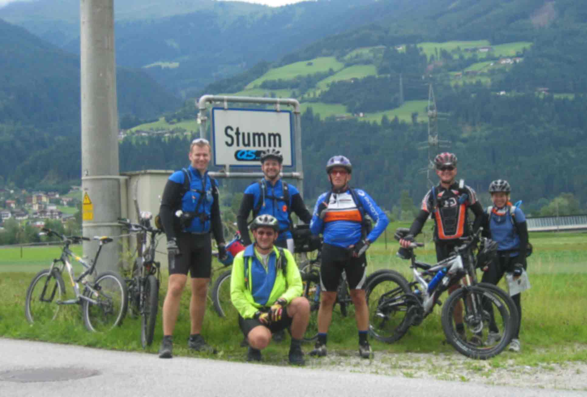 Der Tag startete früh am Morgen, meine Freundin fuhr Michael und mich an den Tegernsee, wo wir um 7:30Uhr auf den Rest der Gruppe treffen sollten. Am Treffpunkt angekommen, wurden die letzten Vorbereitungen getroffen: Route nochmals Anschauen, Bike auf Funktion testen. Und dann sollte es auch schon los gehen. Ab nach Rottach-Egern zum Photoshooting. Letzter Blick auf den Tegernsee und schon gings nach links über die Monialm Ri. Valepp. Eine halbe Std. später passierten wir die Grenze zu Österreich. Noch ein Stückchen hoch, dann bergab zur Herzog-Johann-Klause. Kaum vorbei am Kaiserhaus führte uns eine Teerstaße steil hinauf und gleich wieder Bergab nach Kramsach. Im Hotel Iris machten wir Mittag. Nach einer ausgedehnten Pause fuhren wir über Brixlegg ins Zillertal. Ja, was will man mehr, um 13:30 standen wir an dem Ortsschlid "Stumm". Wir fuhren so hochmotiviert los, dass wir viel zu schnell am Etappenziel angekammen. Nur noch wenige Meter zum ein echter Tip. Einen Begrüßungs-Cappo und Wäschereinigung, alles inklusive. Meine Mitstreiter waren noch so motiviert, das sie spazieren bzw. wandern wollten. Nach kurzer Diskusion einigten wir uns auf spazieren gehen. Ach ja, unsere erste Reperatur: Gerhard´s Hinterrad hatte einen Schlag, mit Hammer und Zange gings ans Werk. P.S. Noch zu erwähnen sei, das Essen im Hotel war echt gut. |