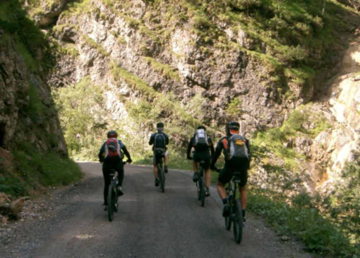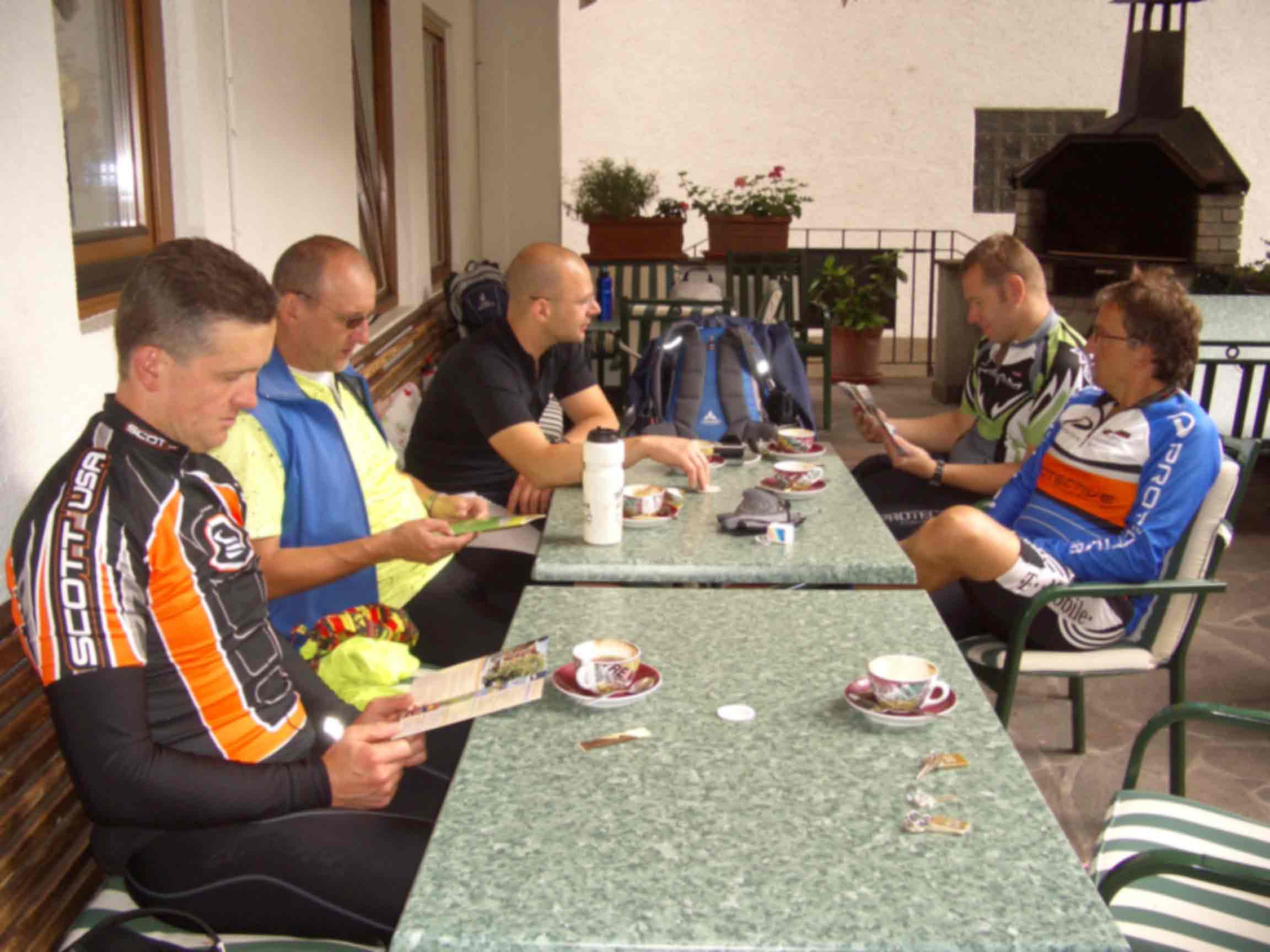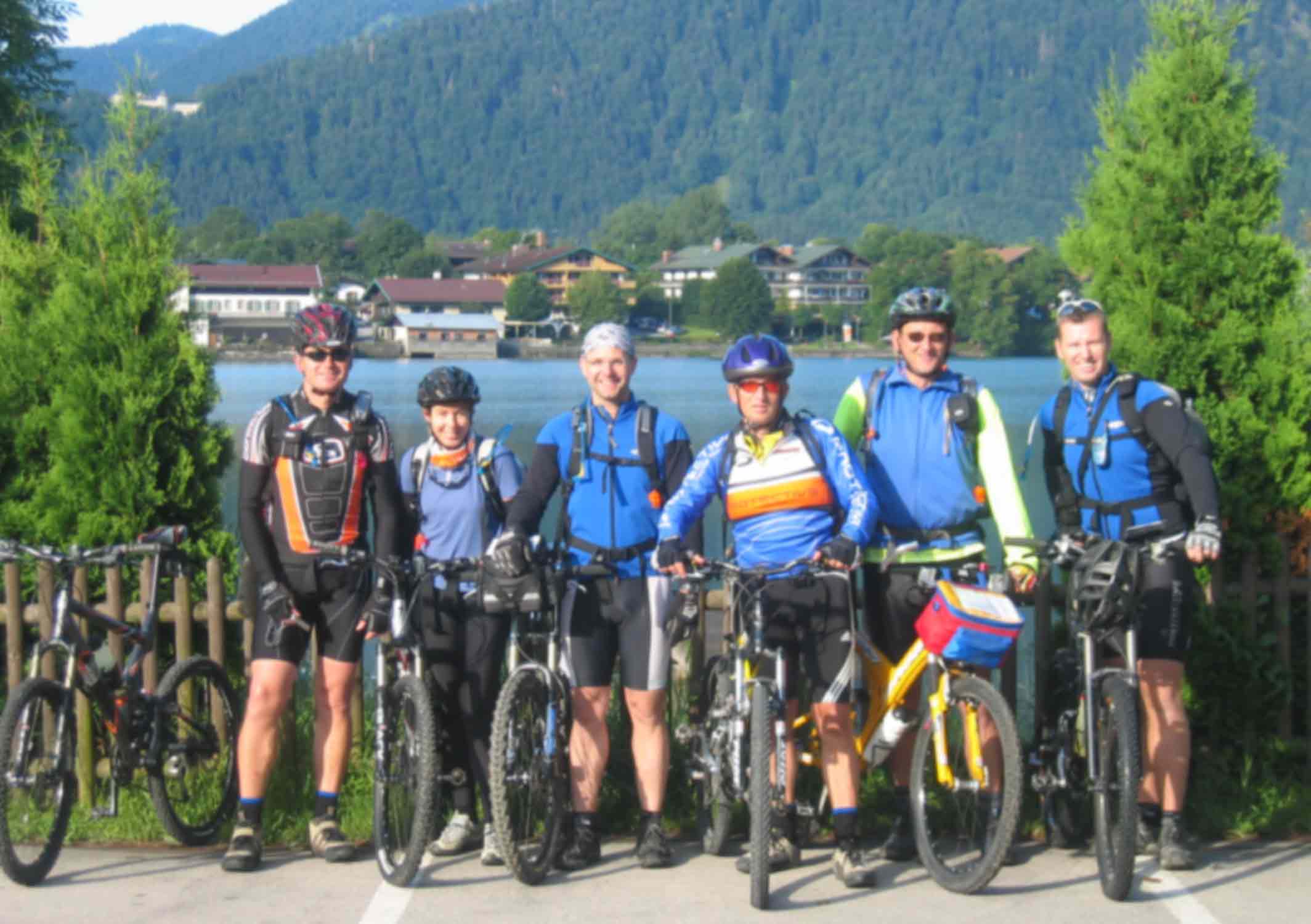 Der Tag startete früh am Morgen, meine Freundin fuhr Michael und mich an den Tegernsee, wo wir um 7:30Uhr auf den Rest der Gruppe treffen sollten. Am Treffpunkt angekommen, wurden die letzten Vorbereitungen getroffen: Route nochmals Anschauen, Bike auf Funktion testen. Und dann sollte es auch schon los gehen. Ab nach Rottach-Egern zum Photoshooting. Letzter Blick auf den Tegernsee und schon gings nach links über die Monialm Ri. Valepp. Eine halbe Std. später passierten wir die Grenze zu Österreich. Noch ein Stückchen hoch, dann bergab zur Herzog-Johann-Klause. Kaum vorbei am Kaiserhaus führte uns eine Teerstaße steil hinauf und gleich wieder Bergab nach Kramsach. Im Hotel Iris machten wir Mittag. Nach einer ausgedehnten Pause fuhren wir über Brixlegg ins Zillertal. Ja, was will man mehr, um 13:30 standen wir an dem Ortsschlid "Stumm". Wir fuhren so hochmotiviert los, dass wir viel zu schnell am Etappenziel angekammen. Nur noch wenige Meter zum ein echter Tip. Einen Begrüßungs-Cappo und Wäschereinigung, alles inklusive. Meine Mitstreiter waren noch so motiviert, das sie spazieren bzw. wandern wollten. Nach kurzer Diskusion einigten wir uns auf spazieren gehen. Ach ja, unsere erste Reperatur: Gerhard´s Hinterrad hatte einen Schlag, mit Hammer und Zange gings ans Werk. P.S. Noch zu erwähnen sei, das Essen im Hotel war echt gut. |